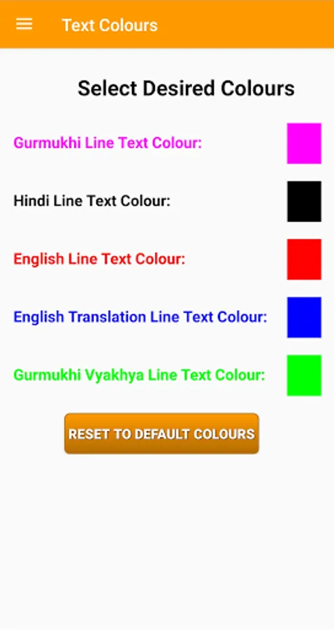 5) Option to change the text colours of Gurbani lines within app. Use "Change Text Colours" from left menu.
