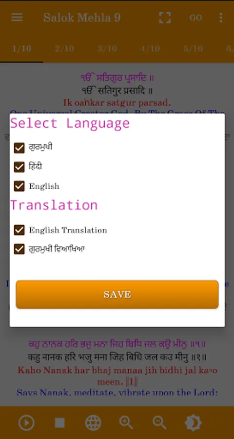 6) User can select app language from Gurmukhi (Punjabi) Hindi and English.