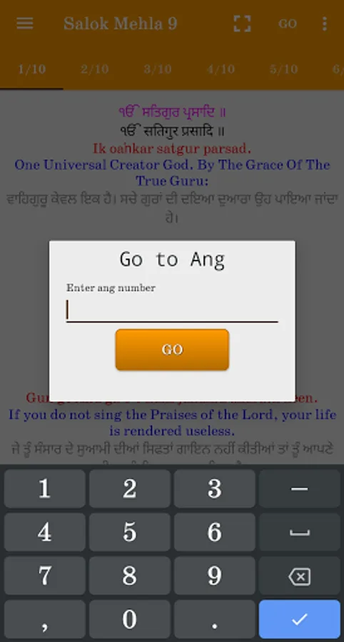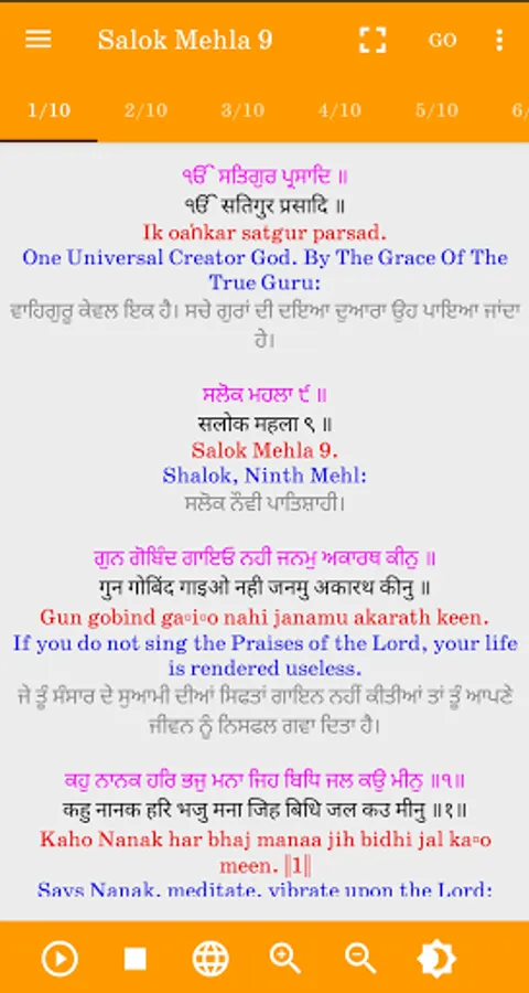 4) User can read meaning of the path in Gurmukhi and English on every Ang (page).