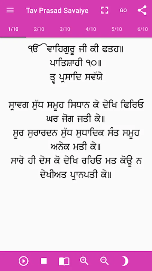 This Bani was composed by Guru Gobind Singh which tells us how to worship and realise God. This Bani appears in the Dasam Granth on pages 13 to 15.