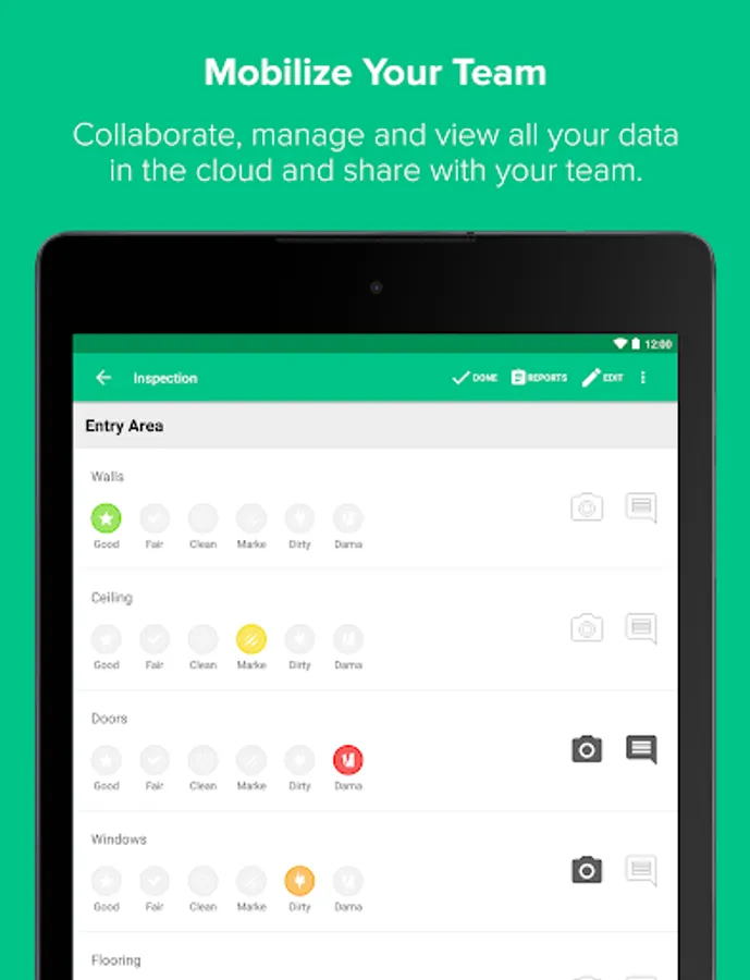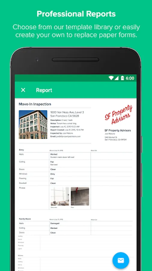 - REPORTING: Create compelling, branded reports right from your device