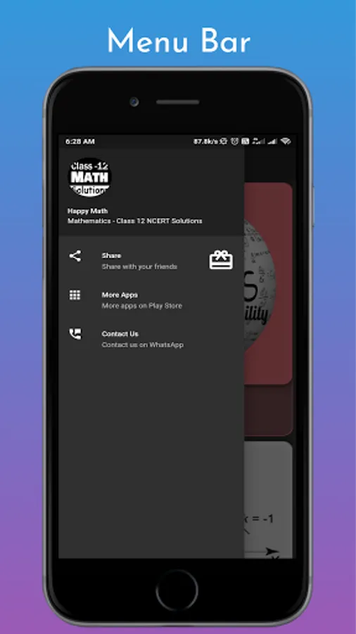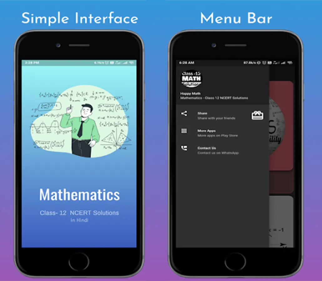 Happy Math App is NCERT 12th class Mathematics solution's in Hindi Part-1, In this app have Class 12th Mathematics NCERT Solution's, This app is specially Made for the BSEB class 12th students to help them prepare for their exams. In this App, we covered 12th Class NCERT Mathematica Solution's Lesson by Lesson. It also helps them throughout the year to complete their homework on time.