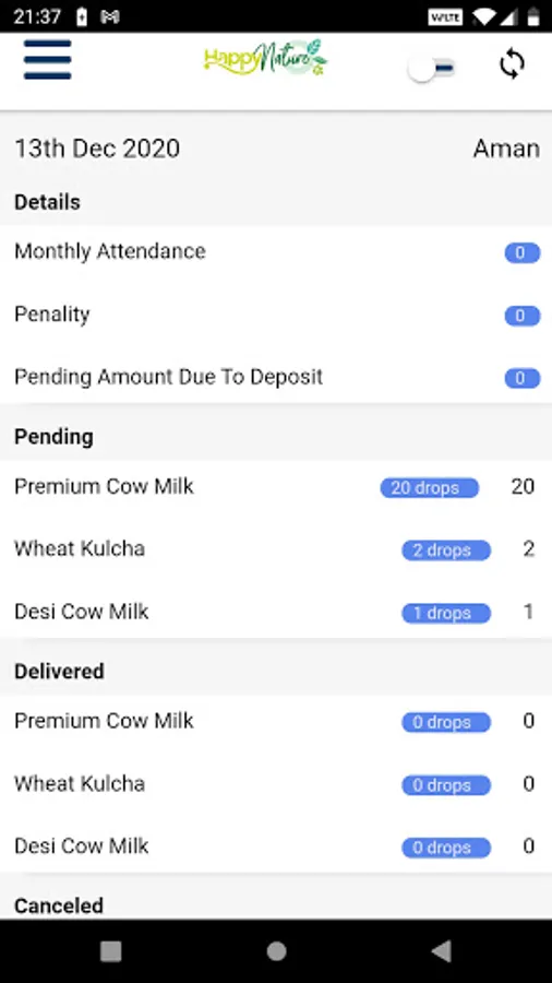 Delivery app for Happy Nature