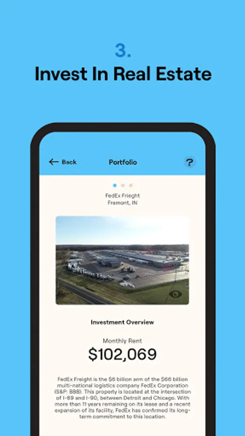 Become a commercial real estate investor in 5 minutes or less. With only $10 and a smartphone, you can start investing in a portfolio of high-quality real estate rented to big-name brands. We collect rent checks, package them, and then shell them out to you.