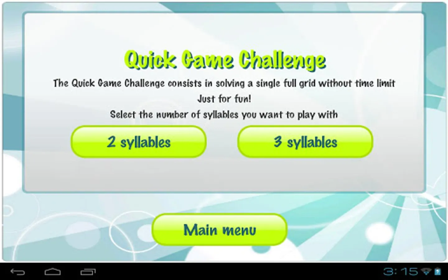 Play a quick challenge with one set of syllables, ideal for practicing or when you only have a few minutes.