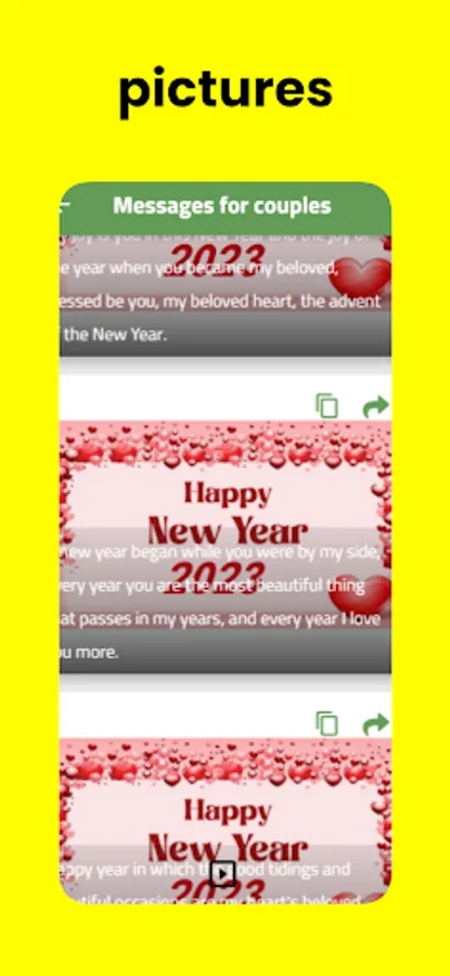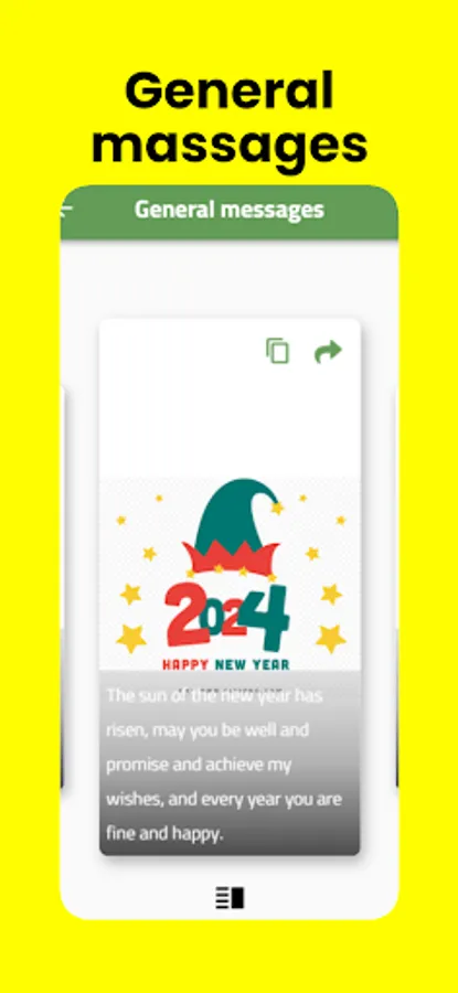 In addition to its collection of pictures, the Happy New Year 2024 app also features a range of general messages that are perfect for sending to anyone. These messages are filled with positivity and encouragement, making them perfect for starting the new year off on the right foot. Whether you want to wish someone good luck in their endeavors or simply let them know that you're thinking of them, you'll find plenty of options to choose from in this section of the app.