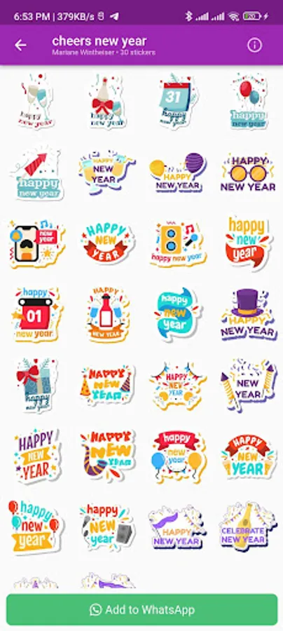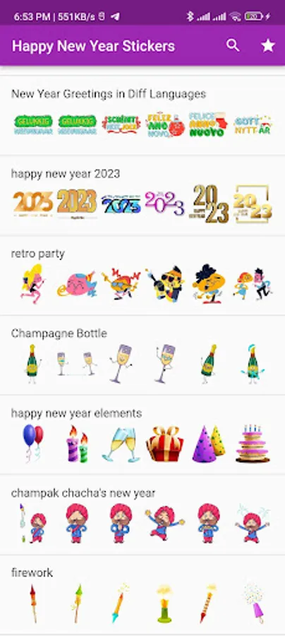 Happy New Year Sticker Packs for WhatsApp contains following Stickers