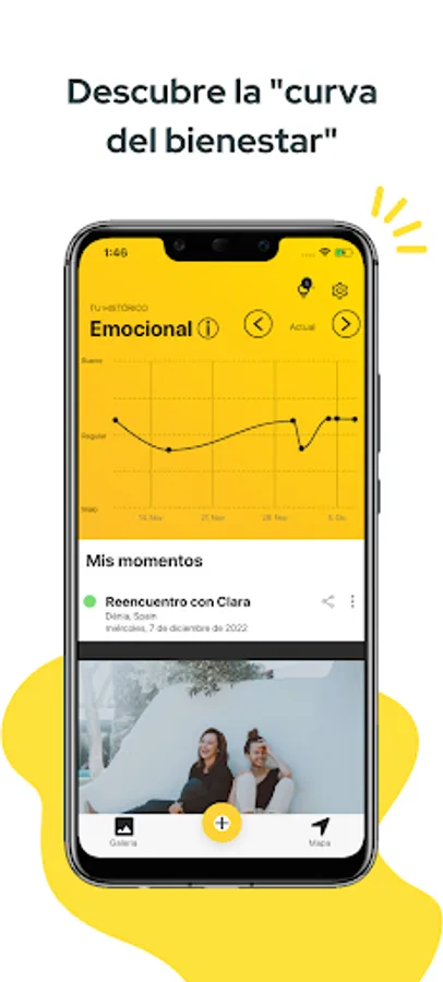 A "well-being curve" with which you can see at a glance the evolution of your emotional state day by day and month by month, and remember them in the future.