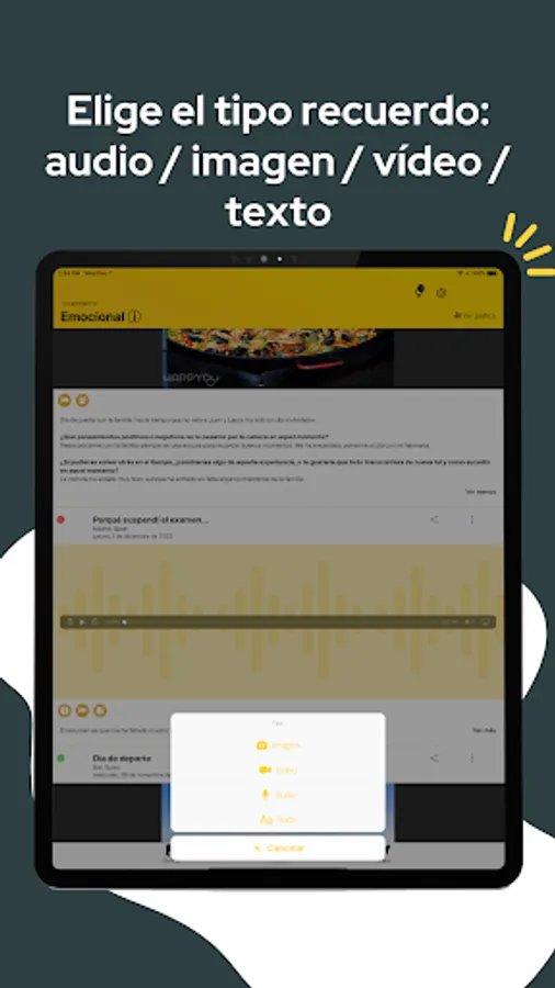 Enjoy all its features, and record moments and emotional experiences of your life in all possible formats (photo, video, text, audio), following simple steps that have been carefully chosen based on technological advances in scientific psychology, understood as the natural science of behavior.