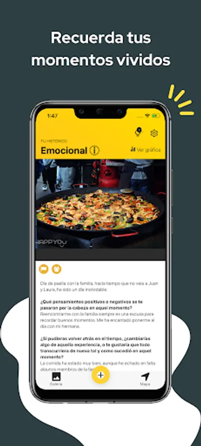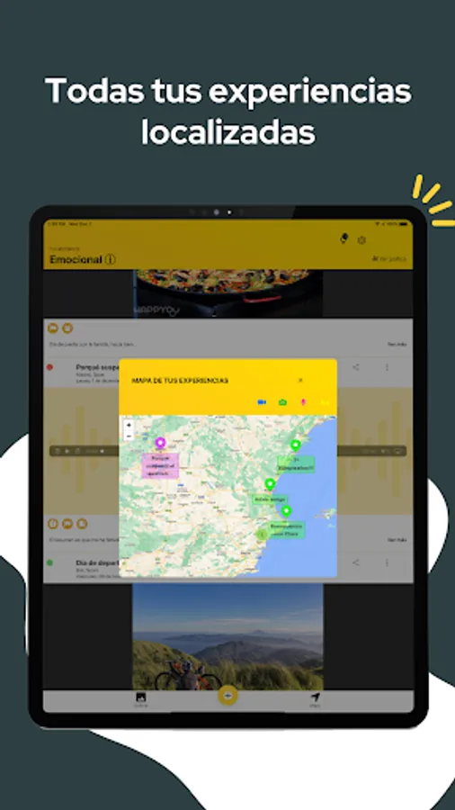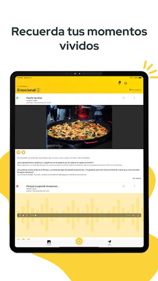 Map, gallery and reminders of your recorded moments and emotional experiences.