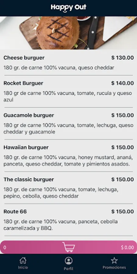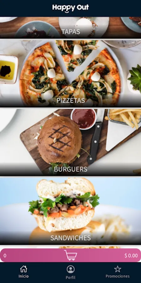 With Happy Out you can access the entire menu of a gastronomic place and order without delay.