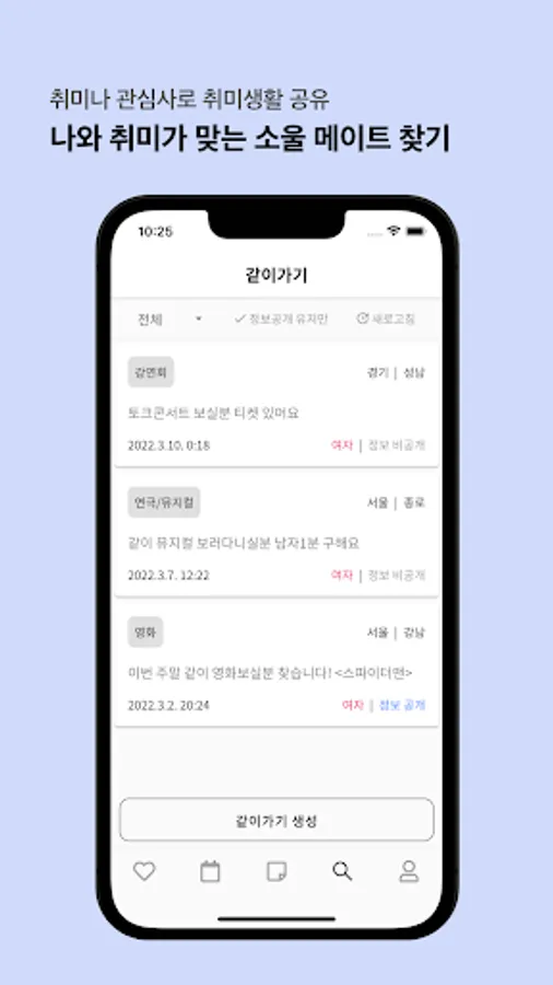 Any member who has been authenticated through e-mail authentication for university students and office workers can sign up for AZIT, and approval is possible through school and work e-mail authentication. You can check each other's contact information by sending sincere messages for free in a new way to select and match your ideal type. In the Go Together service, you can directly match and meet members with the same hobbies or interests as you.