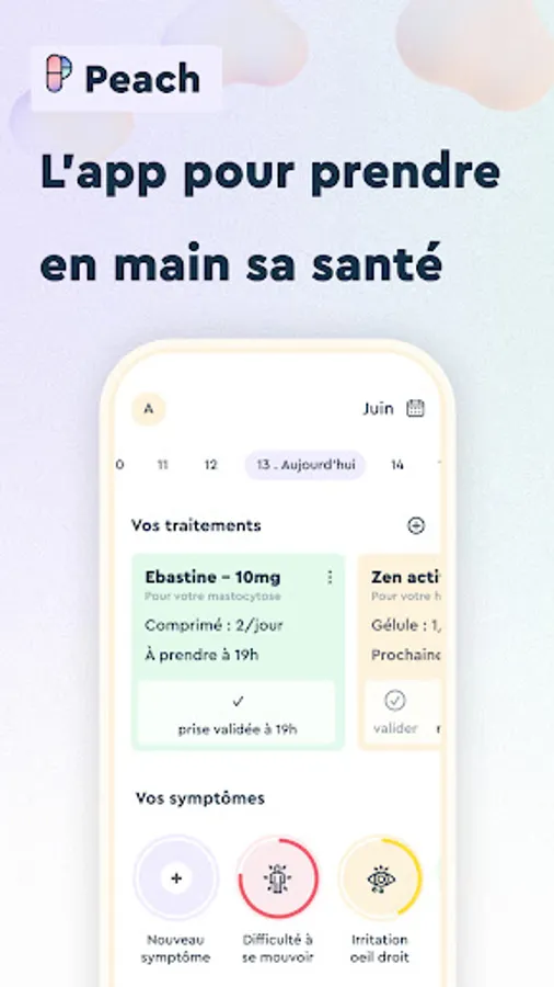 - Enter your treatments in seconds, Peach takes care of the rest. You have treatment reminders adapted to your daily life and the dosage, so you won't miss a tablet.