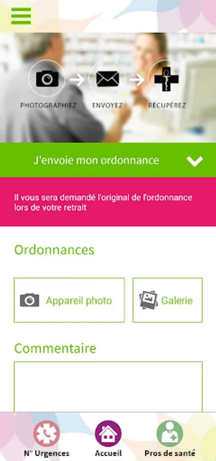 - Send your prescriptions in advance on our secure platform and collect your treatments directly from the pharmacy.