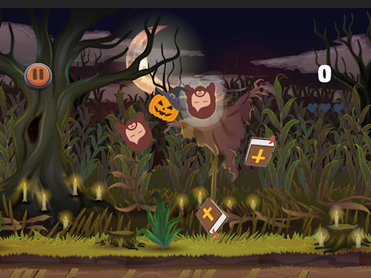 In this game the objective is to defeat the evil forces with the skill of your fingers. Face the enemies, but be careful not to destroy the bible or the happy pumpkin that are helping you on this journey. And remember that Jesus is with us always. So, when you touch it, instead of losing, you will be blessed, time will stop and that way we will be able to defeat more enemies. Go Go Happy Pumpkin!