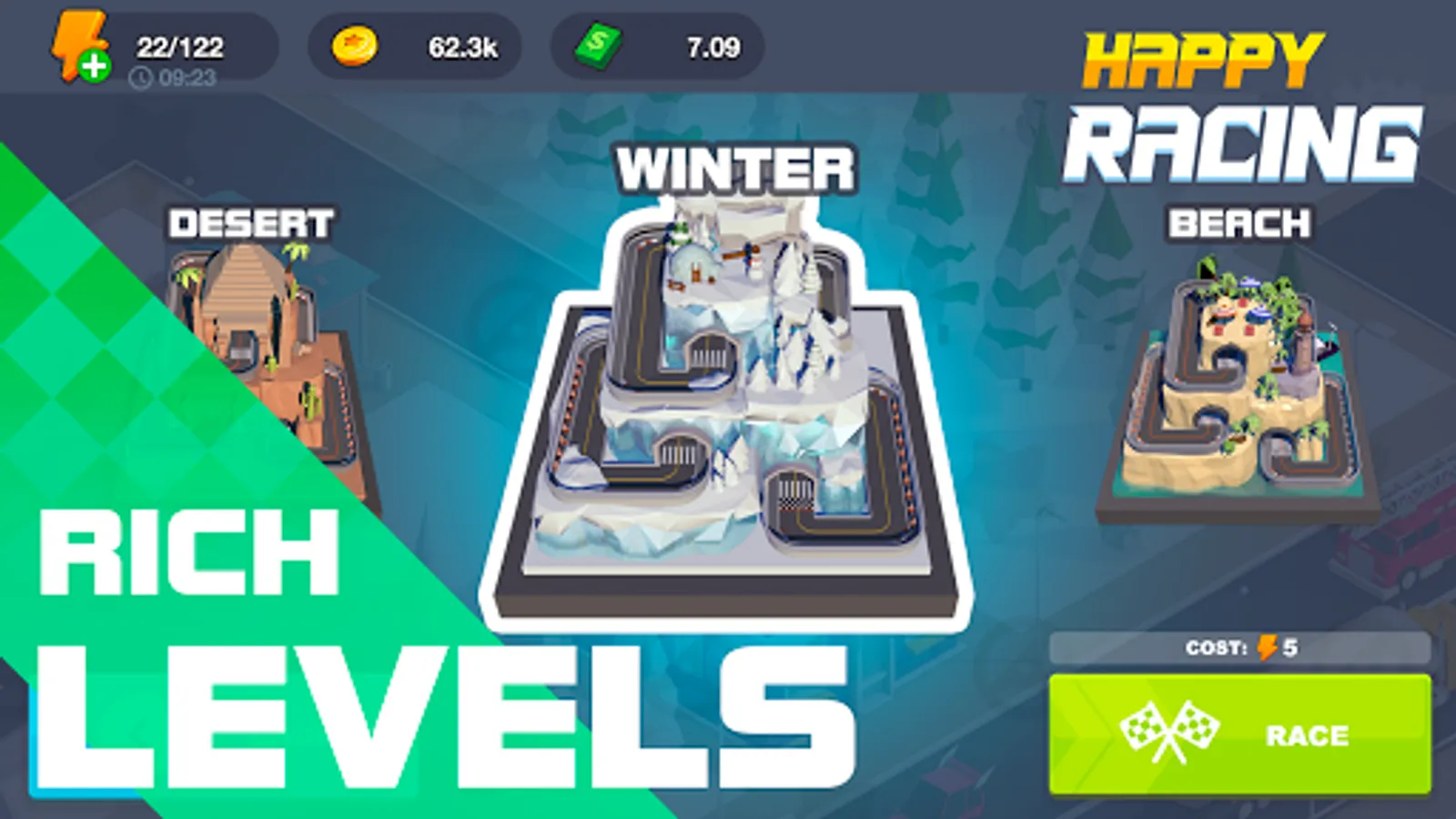 It’s a racing to the top in Happy Racing – the most exciting new hill climbing game!