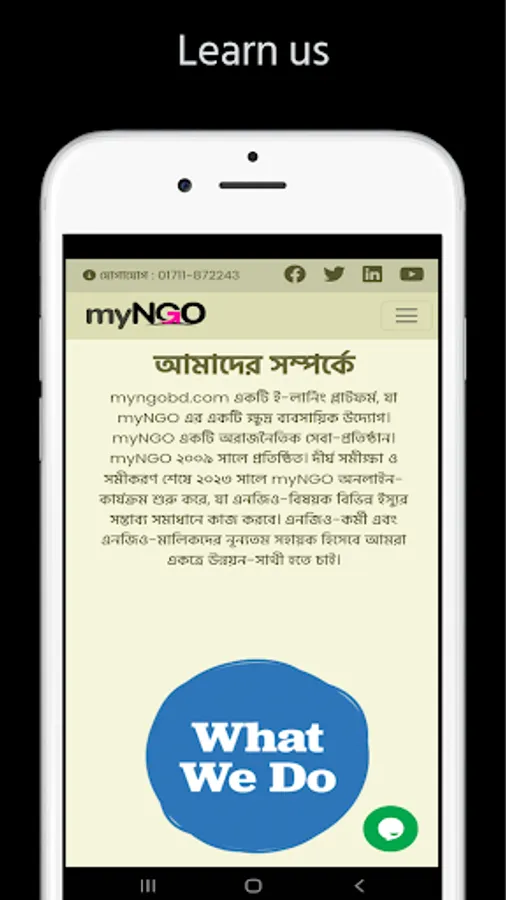myNGO is a 1st e-learning platform for NGOs of Bangladesh. It's help to Bangladeshi Local NGOs. myNGO stablished on 2009 but online platform released on 2023. NGO based support will be provided through our platform.