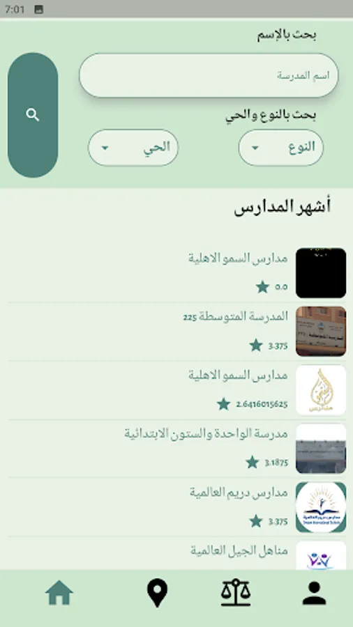 The "Madrasati" application is an application that helps parents and students to find the schools closest to them and get reviews and reports about these schools. The app is useful for parents who are looking for the best schools for their children, and for students who are looking for schools that meet their academic needs. The application provides a list of the schools closest to the place of use, providing detailed information about each school, including the address, phone number and location on the map. The application also provides detailed information on assessments and reports related to each school, such as pass rates, absenteeism rates, and other assessments that can help parents make the right decision about their children's education. The application features an easy-to-use interface and comfortable user experience, where users can select their preferred standards that suit their academic needs and requirements. Users can also rate schools and share experiences with others, which helps improve service quality. The application also provides the feature of reminding users of important dates and upcoming school-related events, such as exams, holidays, and other events. Users can also search for schools based on specific criteria such as academic level, location, majors, tuition fees, and more.