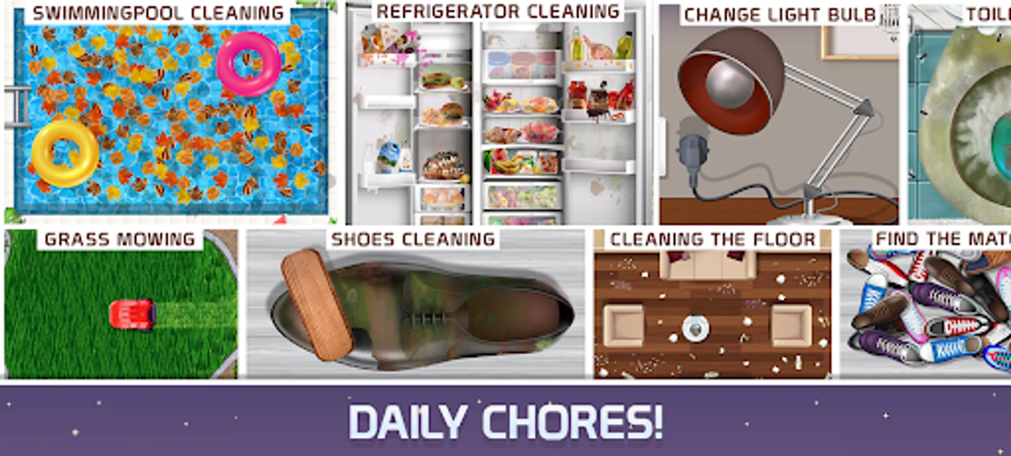 Enjoy various cleaning, fixing, washing, matching, daily chores - like cleaning the floor, cleaning windows, cooking a sandwich/cooking breakfast, Dirty Toilet cleaning, Finding the right matching sock, shoe, and flipflops, fixing the floor, fixing the wallpaper, Swimming pool cleaning, Quote Coloring pages, Grass Mowing, Paint by number coloring pages, Color by number, Mosaic/Pixel coloring, Classic Labyrinth, Mazes and More fun games to earn coins and start your Home decoration journey! Also, we have addictive different fun puzzles like Jigsaw puzzles, Word Connect, Word Search, Word Cross, Ball Sort Puzzle, Block Hexa Puzzle, TileDom - Matching Puzzles, Roll the ball, Connect the cards,- Word Stack, Make7! Hexa Puzzle, Number Puzzle - Sliding Puzzle, Merge Number Puzzle, Puzzles with Matches, Block Puzzle Jewel, Jigsaw Puzzles Hexa, Fit blocks, make words!, Merge Tiles Puzzle, Coloring By Numbers, Brain Game Quiz, Air Traffic Control, and many more interesting puzzles to earn the coins and transform your house into a luxurious mansion.