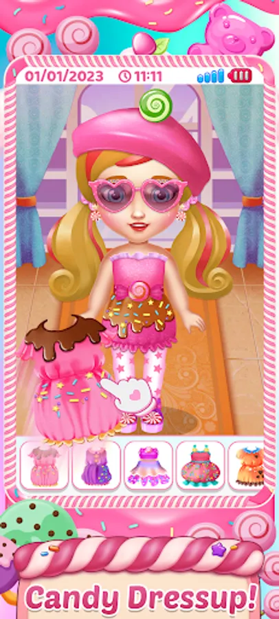 • Dress up the Candy Princesses: You have lots of possible combinations to dress the beautiful candy princesses.