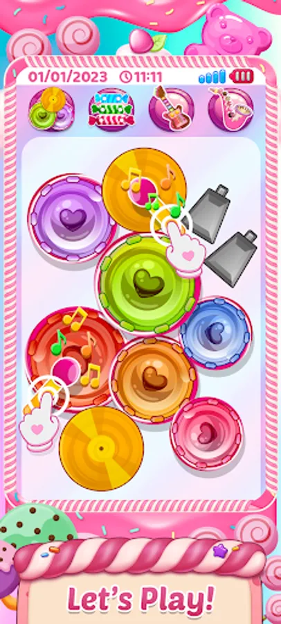• Candy Instrument: Piano, Electric guitar, Xylophone, Drums, Harp. Each instrument has real sounds and representation.