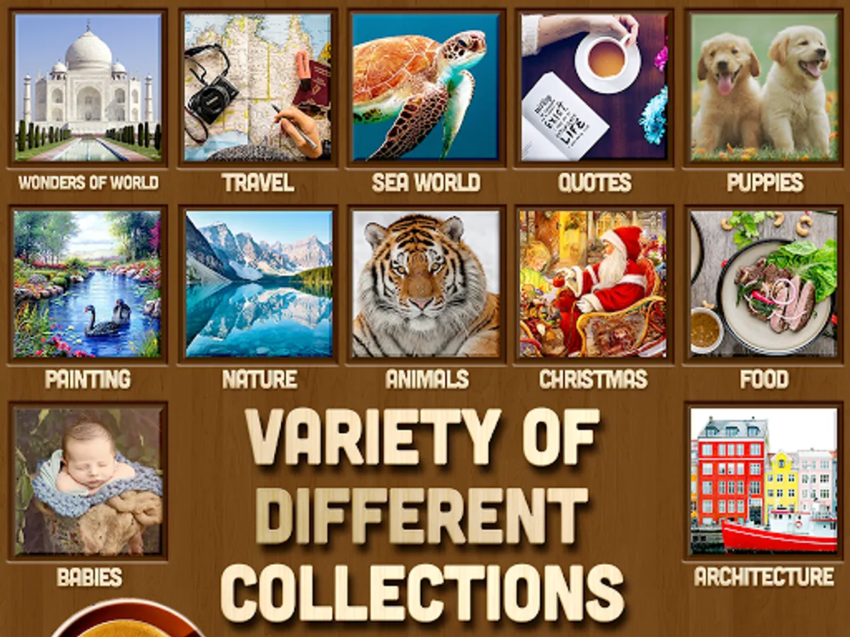 * Beautiful HD picture jigsaws in various themes: Animal, Scenery, Plant, and City