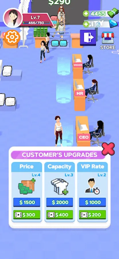 At first, you run the laundry yourself. But then you need help to cope with the influx of customers and their dirty clothes. Thus, in this tycoon simulator you have to do more than in most of the other cleaning games. You need to manage people for success! Get a HR Specialist to hire first workers. This will help you get rid of your laundry routine and focus on your business. Sometimes you will need to contact the HR department to hire new employees and improve your staff’s hard skills.