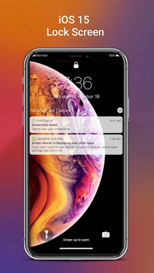 - From the iLock Screen, you can see notifications, open Camera and Turn on flash