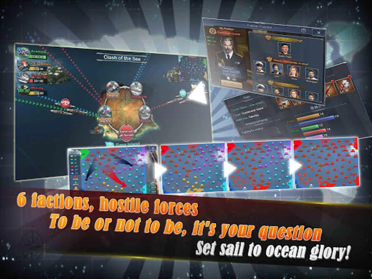 Select your faction and start as a seaman. Vote for the proposed plans, fight together in factions wars, and get promoted step by step. Be careful! Your takeovers may be taken by your enemies again. Deploy your fleets wisely and it is your Age of Ships!