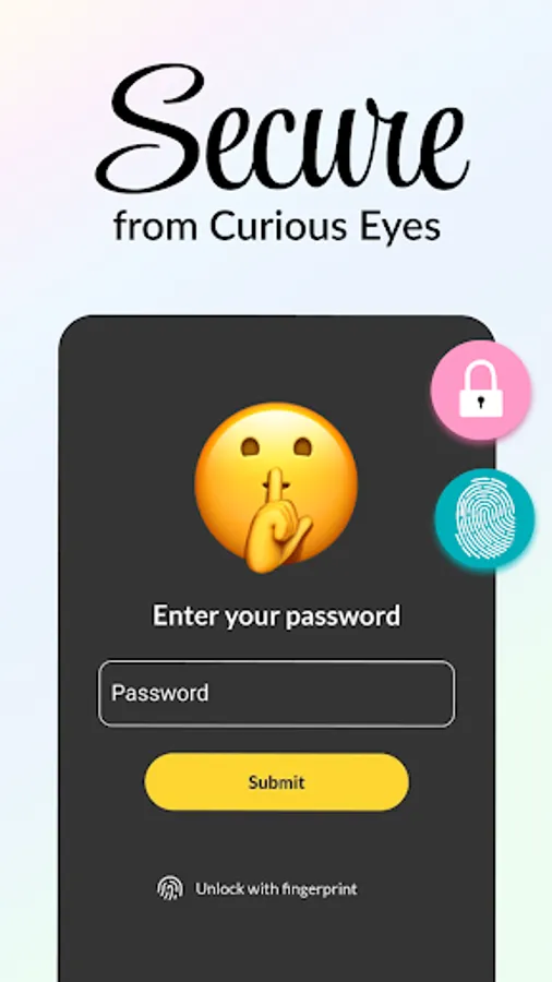 My Personal Diary is a private diary app with a lock. It is a life diary where you can record your memories, secret journals, memoirs and any important events or emotions. You can customise each note with a different coloured backgrounds and text to match your mood. My Personal Diary is available offline, so you can record your thoughts and emotions anytime, anywhere.