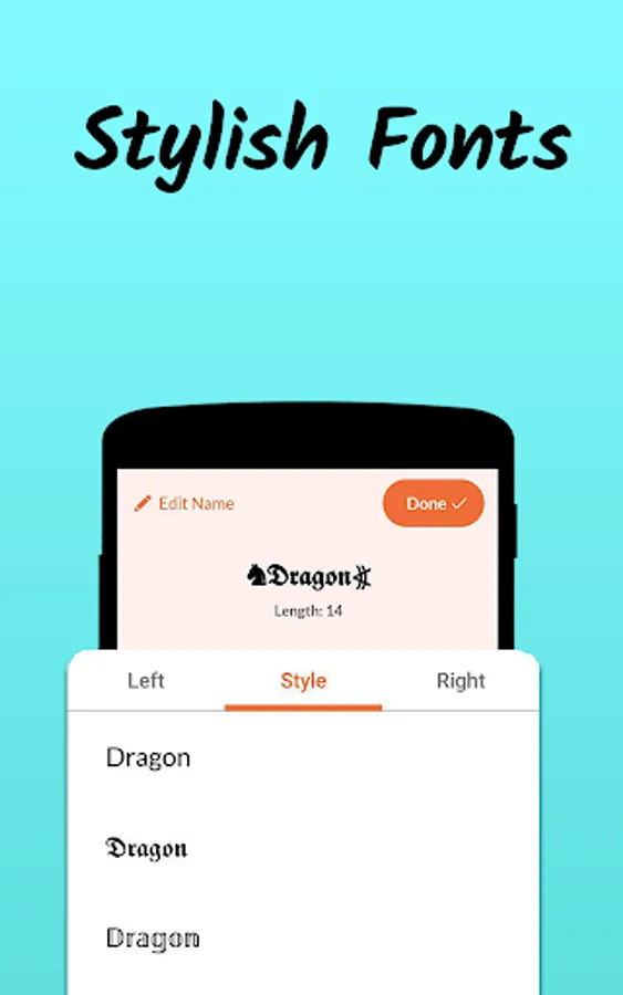 Are you a fan of games? Do you want unique nicknames for your games? How about styling your name or nickname?! Love styling?! With this cool nickname generator app, you can change your name to a cool, stylish name with stylish fonts and best fonts. This free name generator helps in solving the constant problem faced by gamers of 'Nickname is already taken', you can use this game nickname finder and flaunt your name full of stylish fonts and fancy art or just customise your bio with fancy text.