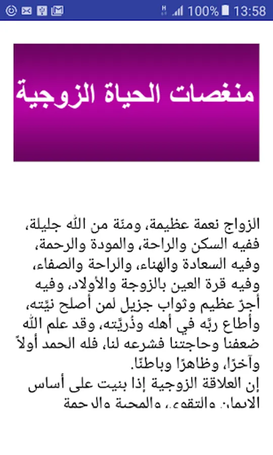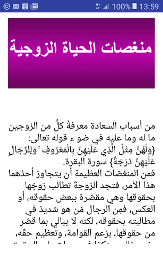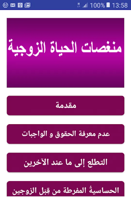 Talk about marital problems, talk wordy long, there is no house without our homes a problem, and the complexity of these problems and a lot of parties and Chapkadtha authorized to ruin the houses, so it was the jurisprudence of the family is important and vital subject and addresses disturbances of marital happiness, which is one of the reasons that lead to divorce and house demolitions. This application displays these drawbacks so knows each one of us.