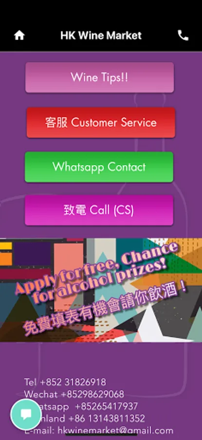 The most popular wine app in Hong Kong! Contains most Hong Kong liquor online shops! There must be one of the multi-type communication modes that suits you!