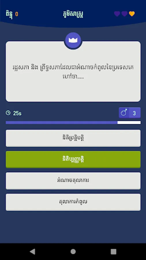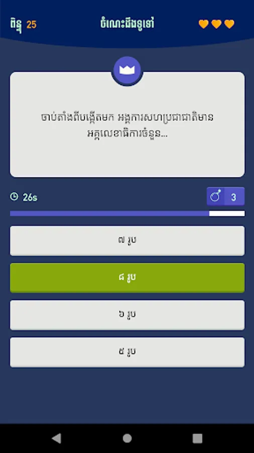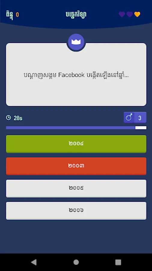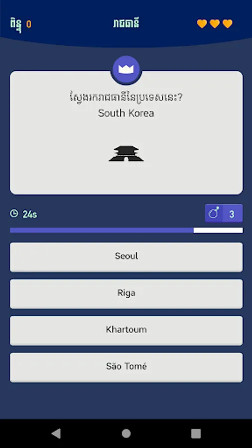Khmer Knowledge Quiz is a multiple choice game quiz. You can compare your knowledge with the rest of the world!