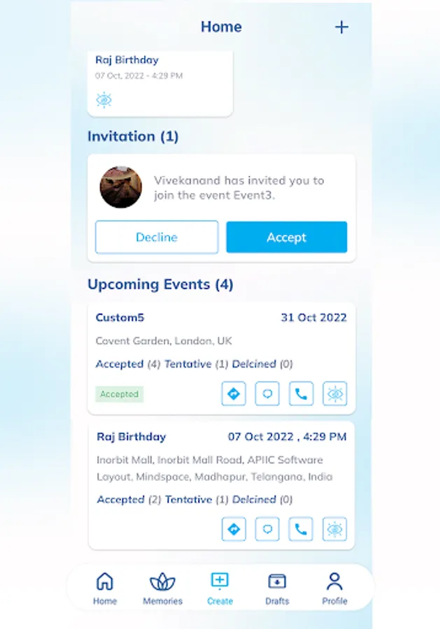 Plan your personal or organizational or nonprofit events such as birthdays, graduation parties, fundraising events, dance productions, annual days, etc. You can also plan casual meet ups, such as camping, hikes, restaurant meet, movies, potlucks with an option to poll the participants on their availability times and preferred locations to finalize where and when to have those meetups. App also suggests what activities can be planned to execute an event and recommend service providers to complete activities. You can also collaborate with participants or team members assigned to complete an activity using chat capabilities, For any services that are needed for your events such as videographers, food, decorators, you can either search for service providers or pick suggested service providers, negotiate with them in finalizing the service providers for your events.