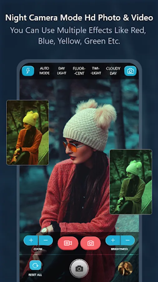 Advance zooming Night Camera Night Mode Camera - HD Photo & HD Video app that allows you to see the objects in low light. Have different color options for night filter effects to find the object with contrast HD photo shooting and HD video recording. You can also use this application as an auto mode, daylight , fluorescent , twilight, cloudy day and much more with auto focus Flash Light even in the dark places.