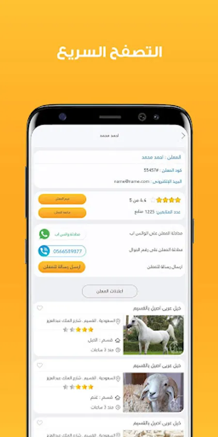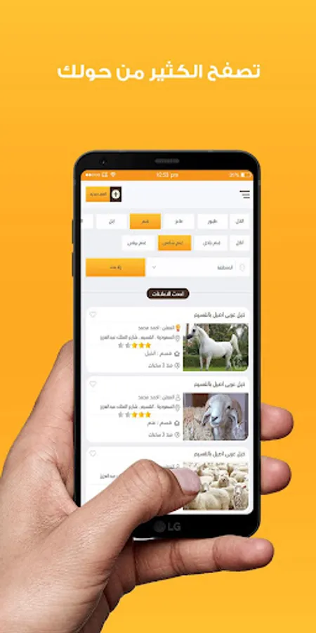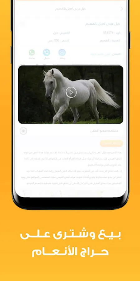 This electronic application provides you with easy access to livestock and horses of all kinds, such as camels, cows, sheep, goats, birds and pets, as well as easy access to their owners and negotiating with them in selling and buying, as well as ease of transportation and delivery after purchase through transportation services and delivery to the site, whether inside or outside cities.