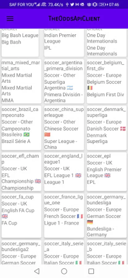 A simple android app that shows how to use Retrofit and Gson to get sports and odds data from https://the-odds-api.com/.Source code is available at https://github.com/harambeeapps/TheOddsApiClient.