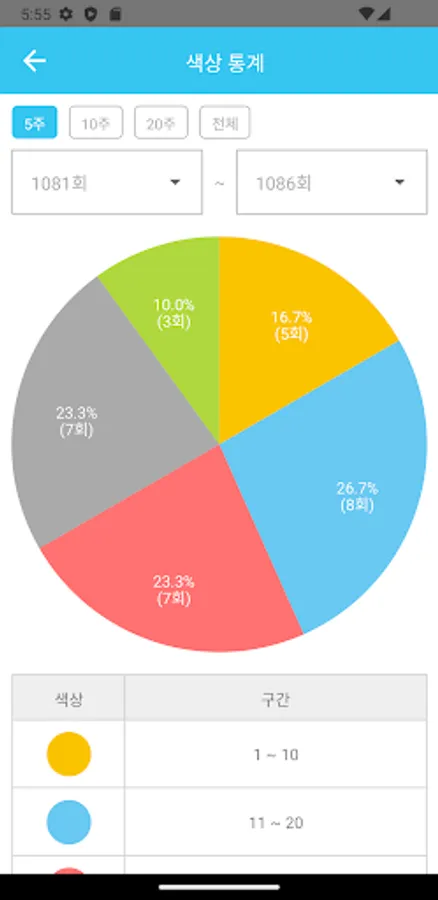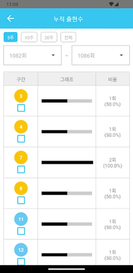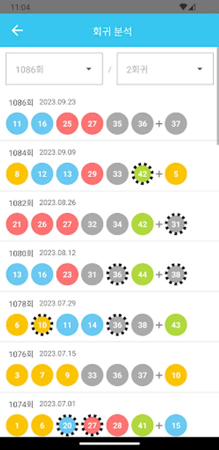 - Generate lotto numbers by filtering fixed numbers, excluded numbers, non-appearance numbers, and cumulative appearance numbers!