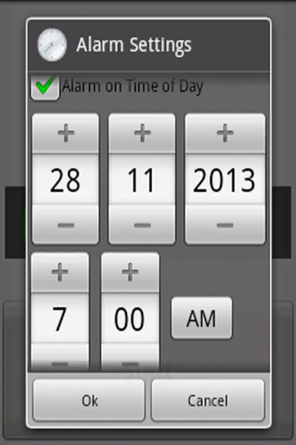 - You may set the alarm to go off at a particular date and time which should also be set in the settings menu.