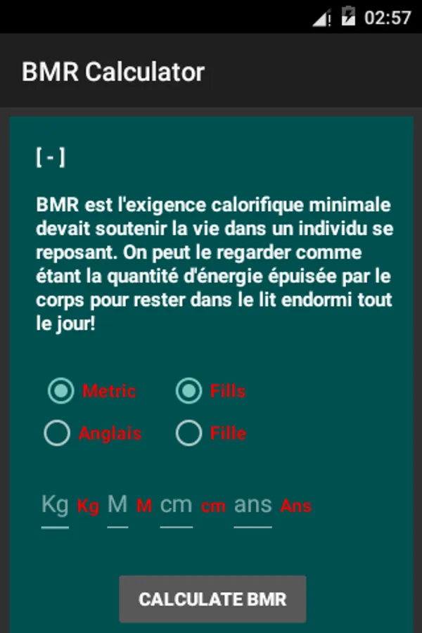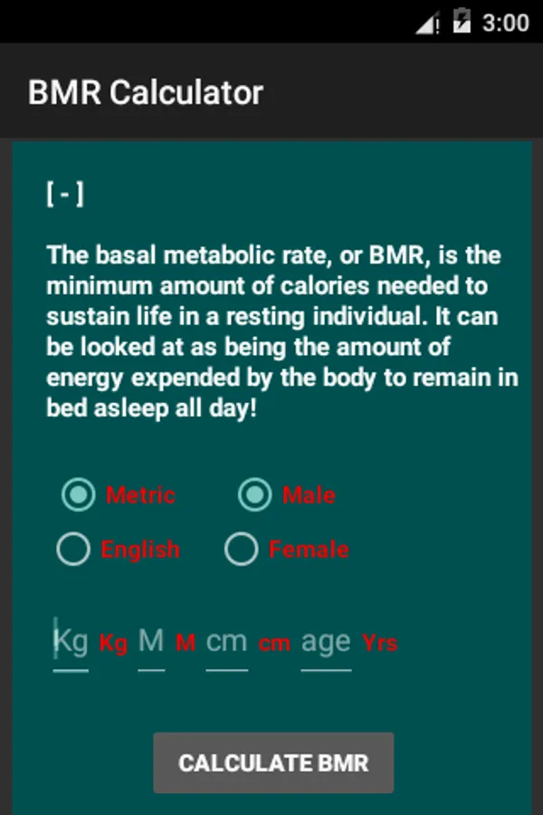 This is a simple, fast and lightweight (ONLY 28k) BMR calculator.