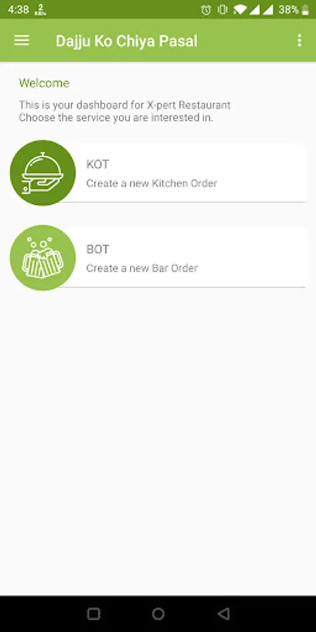KOT/BOT entry application for Dajju Ko Chiya Pasal with Integration with X-pert Restaurant software.