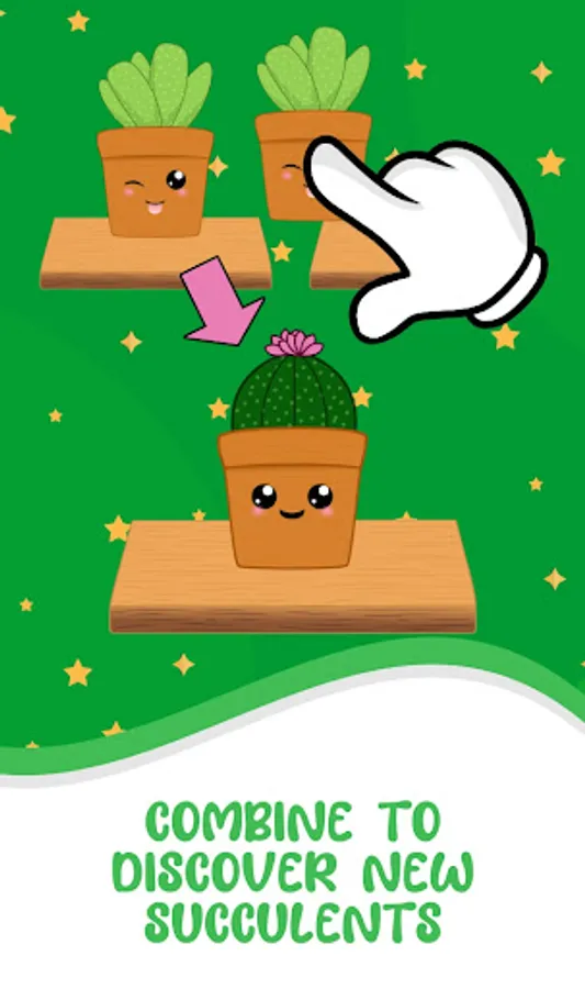 In the Succulent Garden you will be able to merge identical succulents and create a new succulent to grow your garden more and more and discover a new succulent.