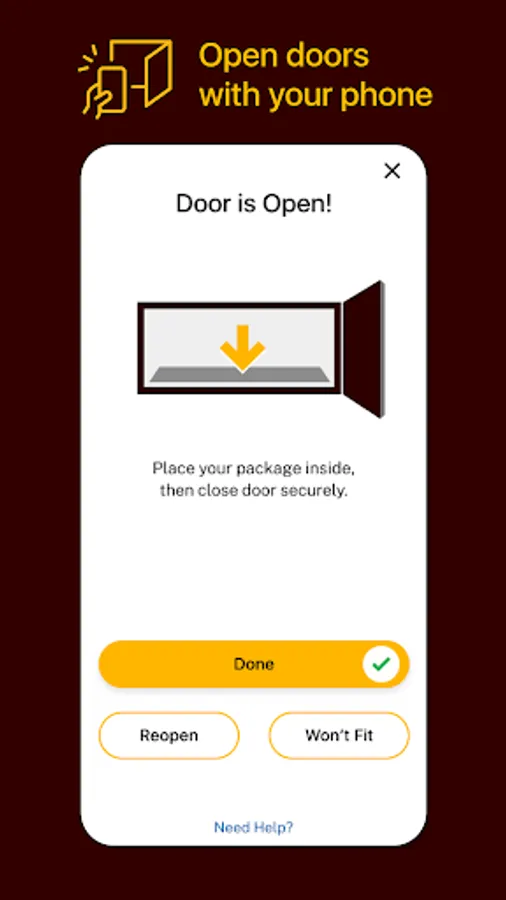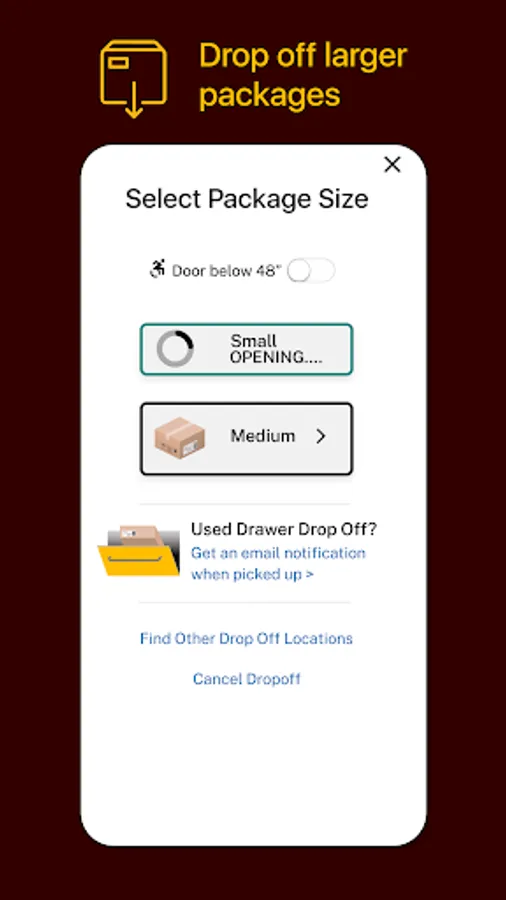 Simply open the drop box app on your phone to connect and open a door and drop off your item. Be sure to close the door when you're done.