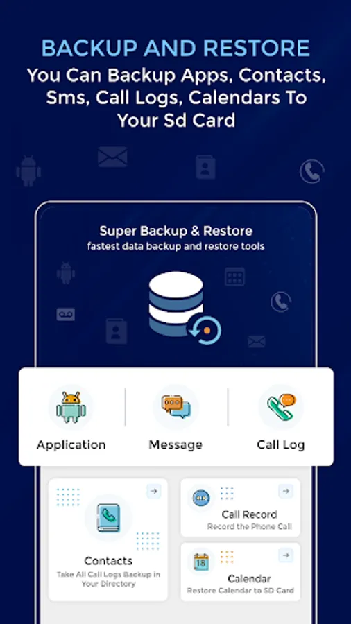 With one click backup Apps, SMS, Contacts and Call using our Fast Backup and Restore - App, Contact & Calendar , keeps your data safe, secure and private.