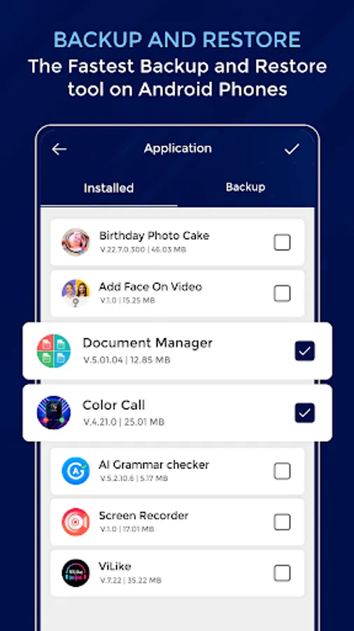 Fast Backup and Restore - App, Contact & Calendar is a smart and powerful backup tool which instantly backup your data and access them from any device, no matter where you are.