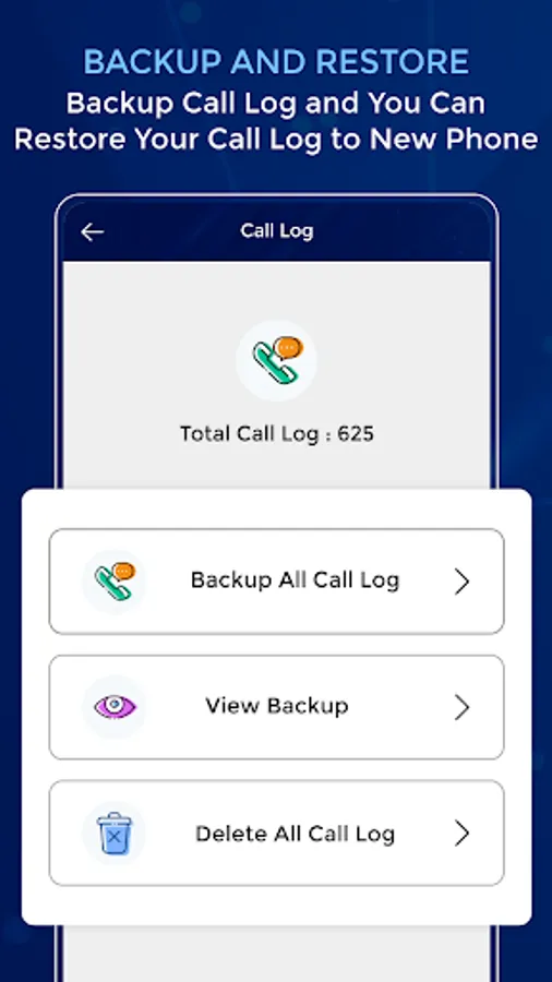 The Fast Backup and Restore - App, Contact & Calendar app quickly generates a backup file for you, which can be shared with your new phone. Just like the backup process, restoring call logs from a backup file has been made equally simple.