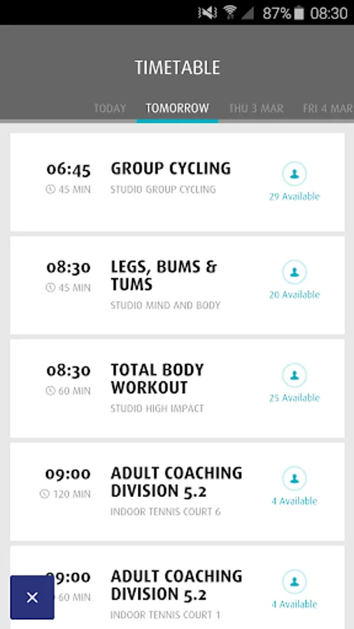 The Harbour Club app offers Harbour Club members an easy and convenient way to view timetables and book courts while on the move. In addition, for Notting Hill Harbour Club, it offers the facility to book group exercise classes.