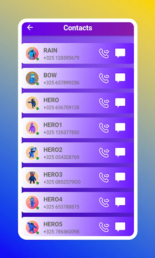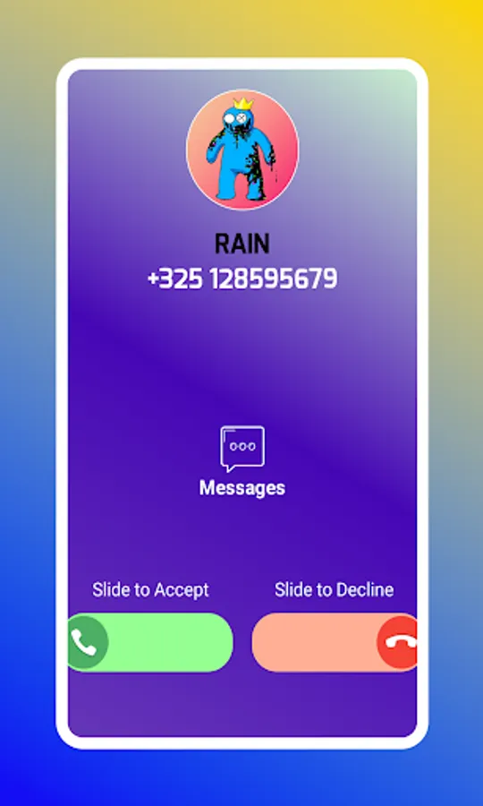 this fake call from rainbow friends fake call so this app allows you to make unlimited call with the rainbow friends fake call and her friends.