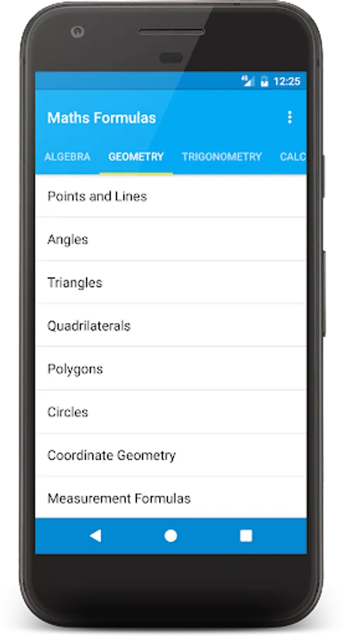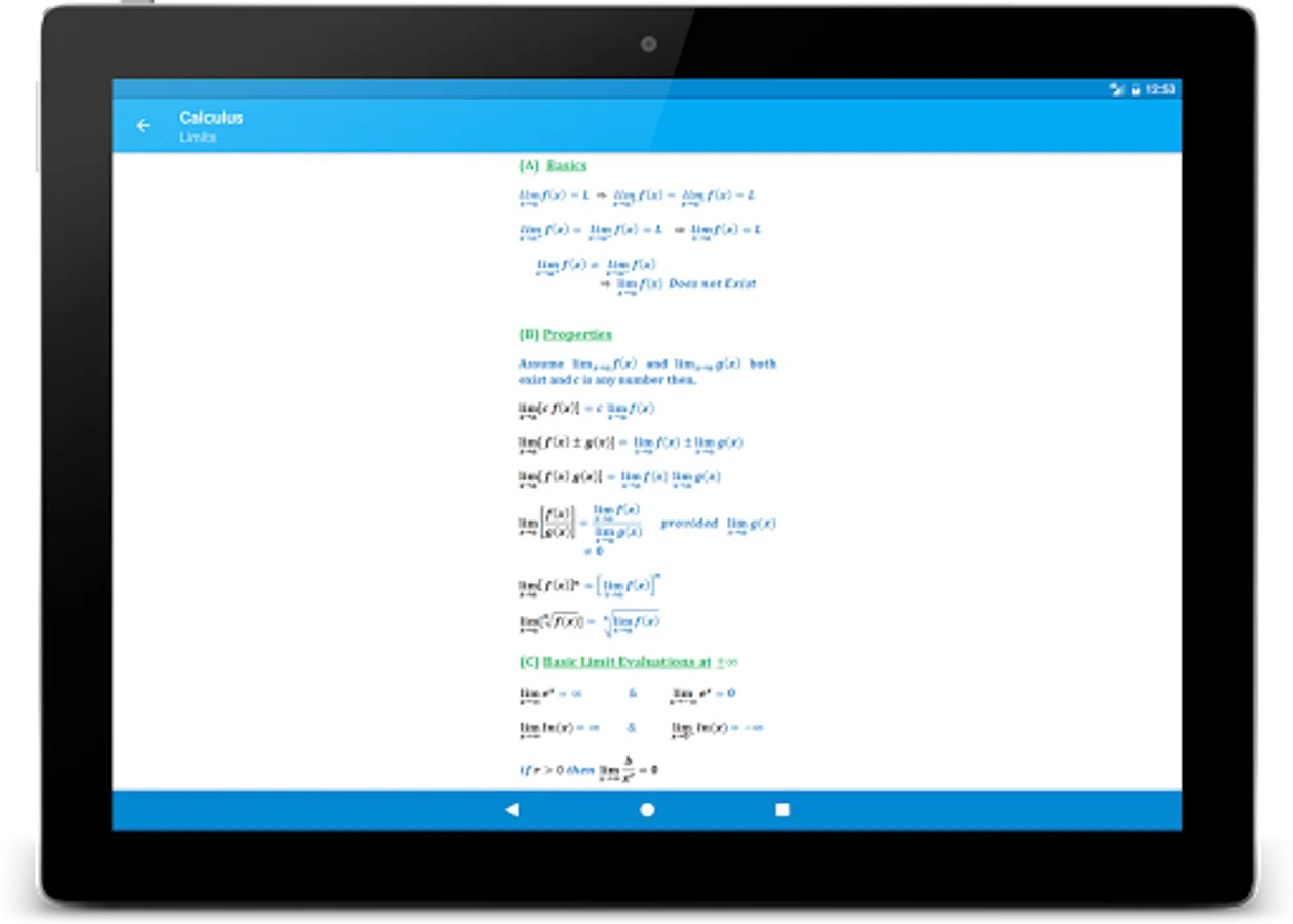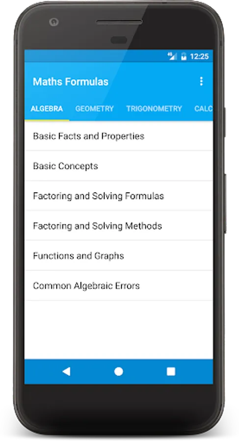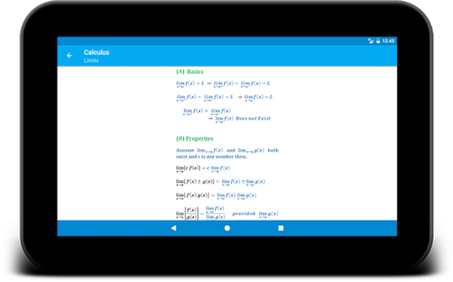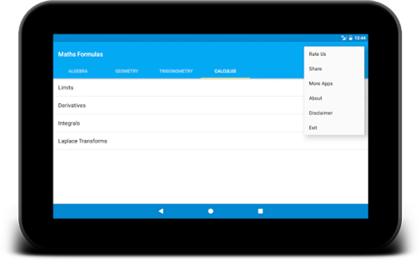 Maths Formulas is one unique and comprehensive application that is particularly designed as a one-stop solution for students. It lists out all the important formulas and topics in Algebra, Geometry, Trigonometry and Calculus. The topics covered are: